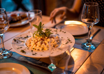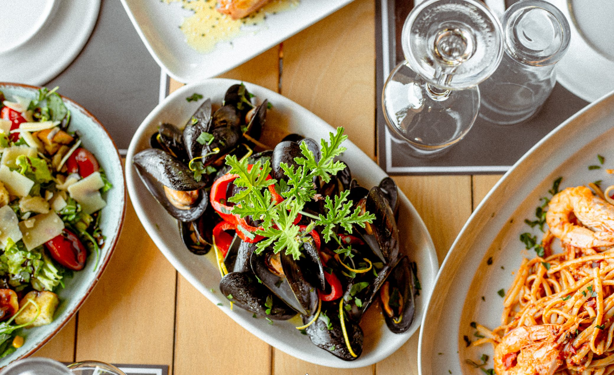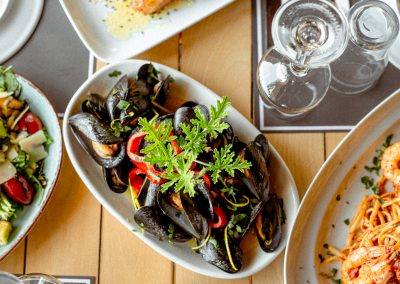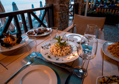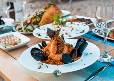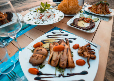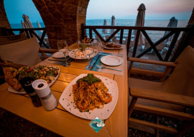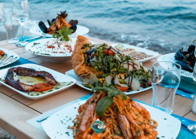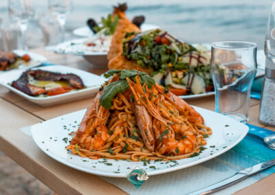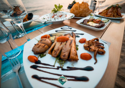 Φρέσκα ψάρια & θαλασσινά, εκλεκτά κρέατα, δροσερές σαλάτες, και μια προσεγμένη επιλογή από εξαιρετικά κρασιά, δημιουργούν την ιδανική γαστρονομική εμπειρία.